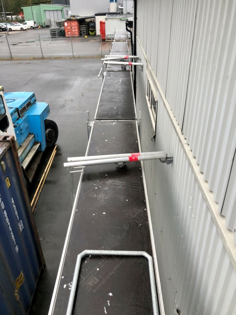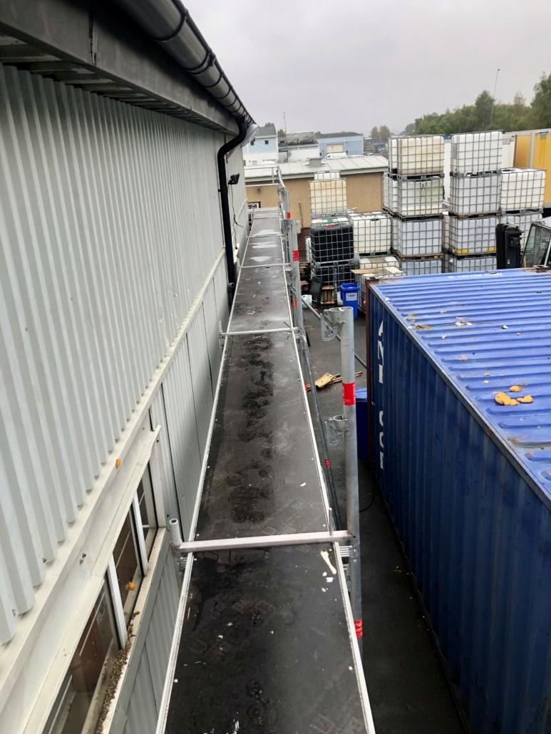 Eftersom vi redan känner till våra ställningar så görs jobbet snabbt, effektivt och säkert. Plattformar, diagonalstag och skyddsräcken placeras där de gör mest nytta, sett ur både säkerhet och ergonomi för den som ska utföra jobbet på dem. Innan vi börjar bygga ställningen kontrolleras underlaget noga och innan den tas i bruk kontrollerar vi förstås alla delar så att inget fattas eller sitter löst.